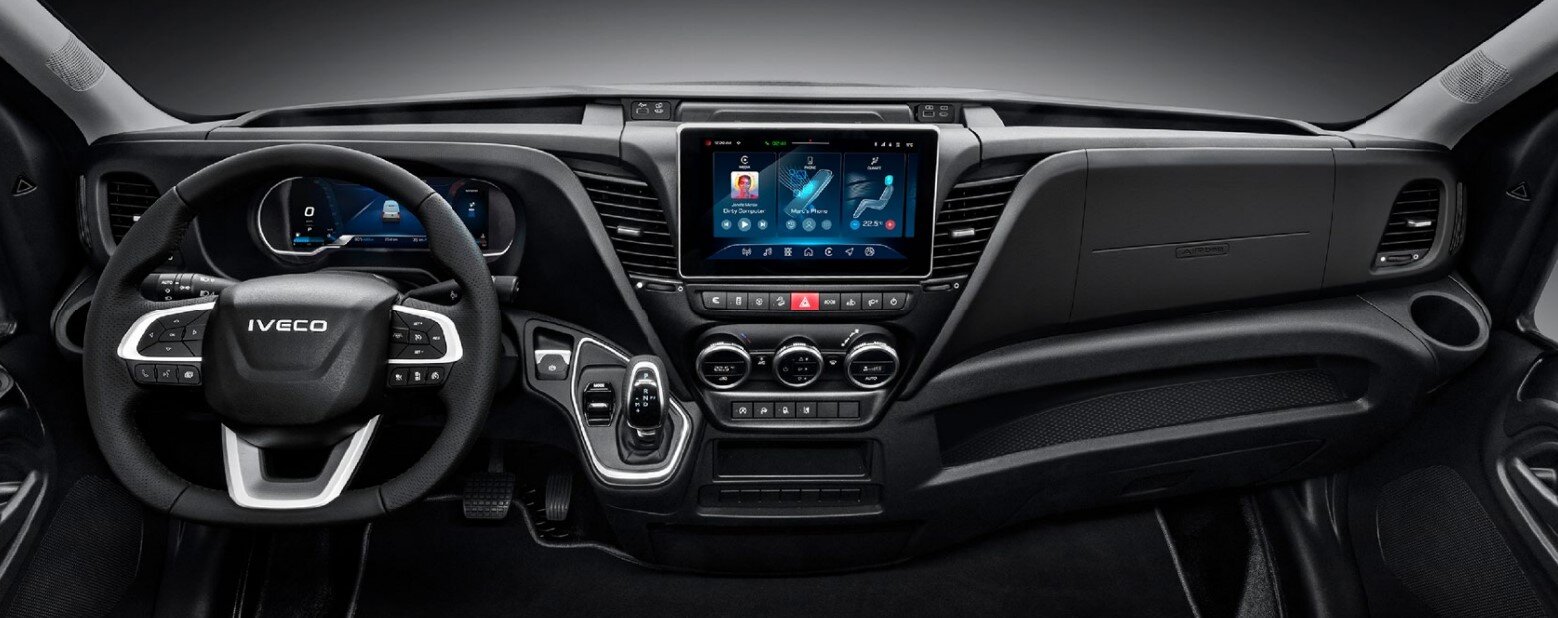 Der Daily hebt sich durch sein serienmäßiges 10 Zoll großes Kombi-Instrument von der Masse ab. Die Informationen zum Fahrzeug werden übersichtlich und in großer Schrift auf dem Breitbild-Display dargestellt. Fahrer haben die Wahl zwischen drei Designs, die sich per Schalter ganz einfach umstellen lassen.